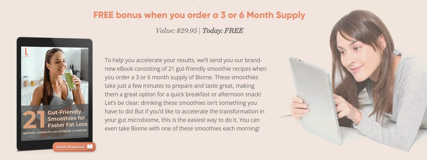 When you make your purchase of Lean Biome on the official website, you’ll receive 2 exclusive bonuses as a gift!